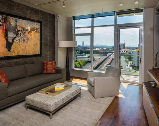 大大的窗户带来充足的光线,灰调的沙发和背景墙双呼应。